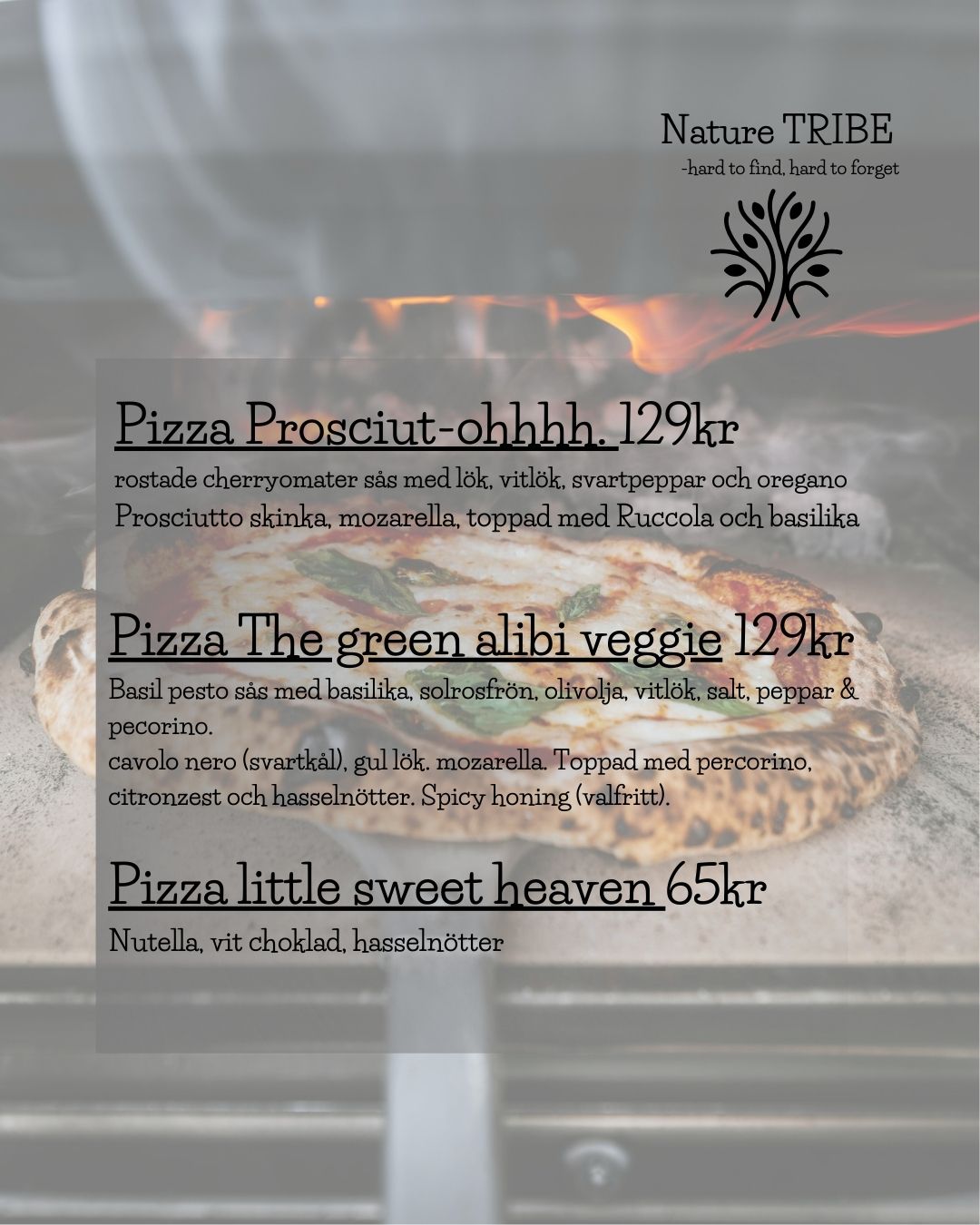 I have space for 6 persons in the Tipi tent which is heated by a wood burning stove. If you want to be sure of your spot, you´re welcome to book your spot in advance. A gentle reminder that I am one person with one pizza oven, so it might take a little longer. Think of it as a slowlunch or "fika" but I promise you it will be worth it!